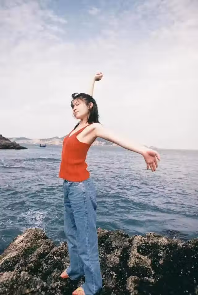 很多人拍照都習慣了直直地拍,這樣拍出來的照片永遠都是千篇一律的,其實很多時候可以試著在一些場景用俯拍的角度,比如海邊玩沙的時候,就可以利用俯拍,這樣拍出來的效果也很好。