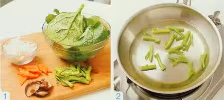 3、再將山藥、香菇、胡蘿蔔片放入湯內煮熟。