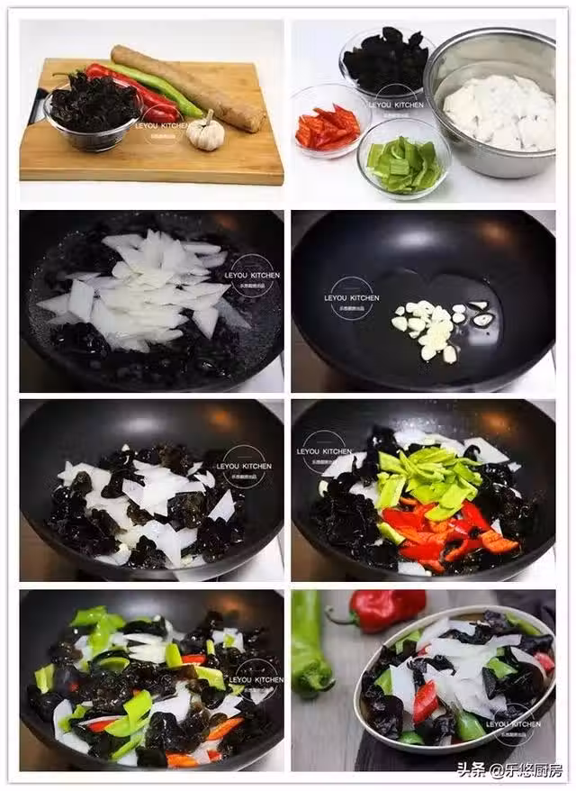 第五步:將木耳和山藥瀝干水分放入鍋中,大火煸炒勻。