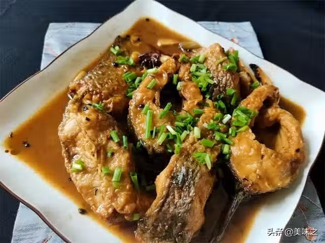 9、鍋內留底油,放入八角蔥姜蒜爆香,入煎好的魚段,烹入香醋。