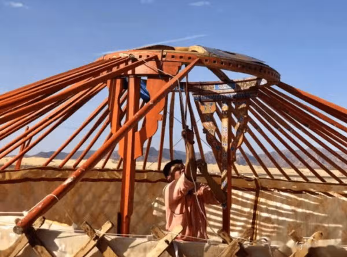 蒙古包的門通常開在包的最上端,窗則開在包的下面,形狀也有不同。最常見的是「阿格」(蒙古包)門,它一般都是長方形的。
