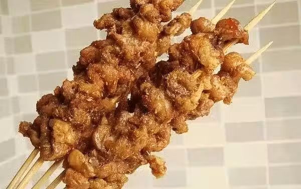 雖然是速成羊肉串,味道卻尤其鮮香,羊肉韌勁十足,在牙齒的咬合之間,肉汁全都一點一點滲到嘴裡,完全可以媲美攤位前排著長隊的街頭羊肉串。