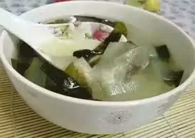 材料:帶皮冬瓜一斤、荷葉一張(買新鮮或是到中藥店買乾的均可)、薏仁三兩、扁豆一兩、姜三片。