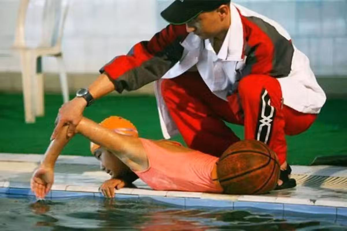 入水訓練時,教練一邊看著她游、一邊不停地給她指正錯誤。別人游1000米,錢紅艷就得游2000米。
