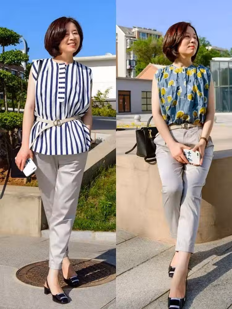 五六十歲女人,這才是你該有的打扮:齊踝褲+短衫,顯瘦又顯年輕