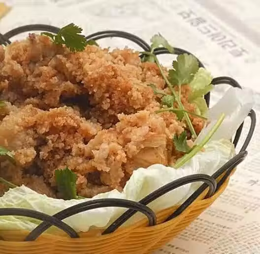 雞肉400克,糯米粉50克,江米酒25克,薑5克,大蔥15克,醬油15克,鹽4克,胡椒粉1克,味精1克。