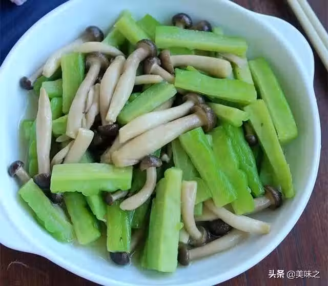 苦瓜1根、蟹味菇100克、油適量、鹽適量、味精適量。