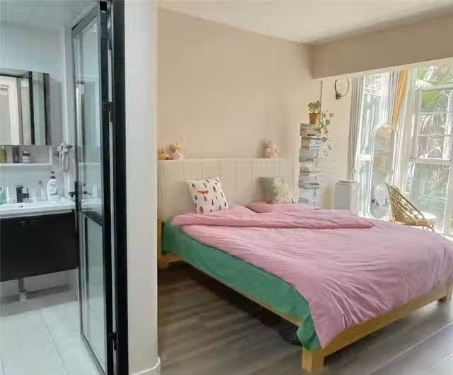 潮濕方面,如果衛生間防水做到位,倒也不算難解決,塗刷+滌綸防水後,最起碼床鋪放在靠近衛生間那面墻上不會對生活有太大影響。