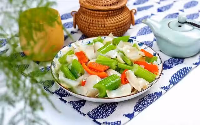 【具體做法】1、將西芹洗凈後切成小段,百合撕成小瓣,紅菜椒切小塊備用。2、熱鍋加油,放入蒜末炒香,倒入西芹和紅菜椒翻炒,炒至蔬菜略微變軟,再倒入百合繼續翻炒,炒至蔬菜略微變軟,加入適量鹽,繼續翻炒均勻,炒至蔬菜熟透即可關火盛出。