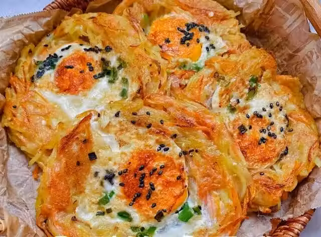 (5)翻面煎至兩面金黃色即可出鍋,焦香軟糯好吃營養大人小孩都喜歡吃!