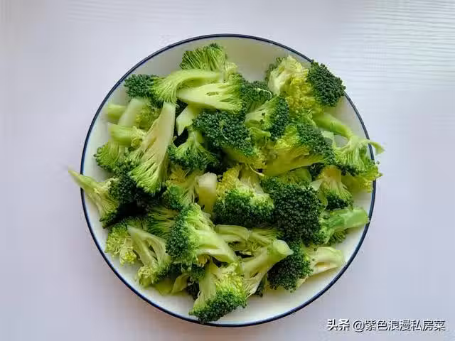 1.準備食材,西藍花掰小朵,放鹽水中浸泡10分鐘,再清洗乾淨,西蘭花用鹽水浸泡 可以泡出裡面的小蟲子。