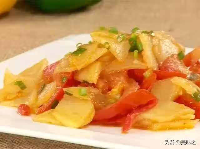 1、首先將土豆切菱形片、西紅柿切片、蔥白切蔥花。