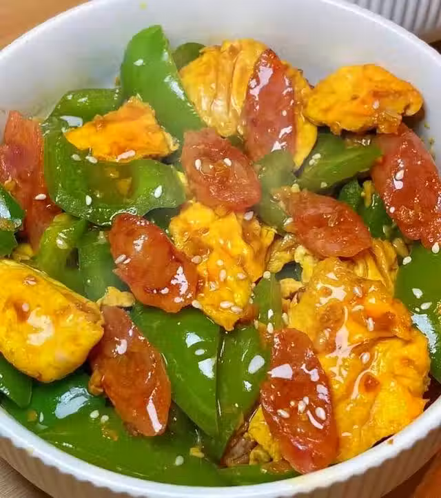 2、青椒雞蛋炒火腿腸的做法: