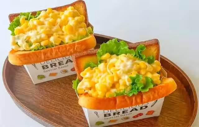 食材準備:玉米粒,芝士碎,生菜葉子,一片麵包片等。
