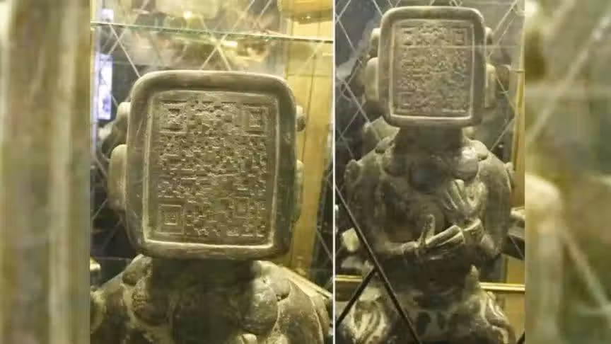二維碼在現代生活中都是非常常見的,吃飯、買票、出門旅行都會用到,總之生活在處處都有二維碼,但是人們來到墨西哥這個博物館的時候,看到這個雕像上有個二維碼時十分驚訝,紛紛掏出手機來掃。