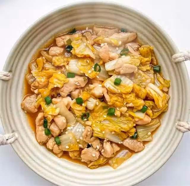 食材準備:雞腿,薑片,食用油,蔥花,蒜末,娃娃菜等。