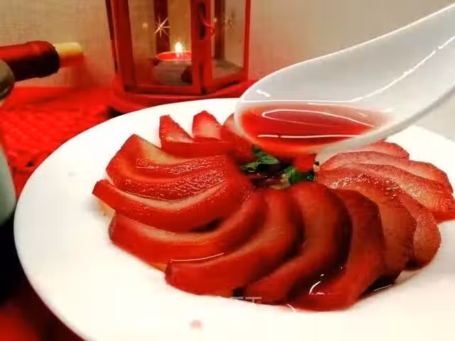 5、吃時取出切片,把葡萄酒的汁澆入一點在盤中即可享用。