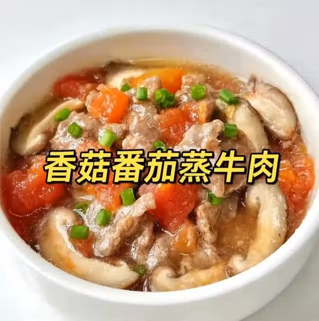 做法:牛肉加薑絲,澱粉,醬油,輔食油抓勻腌制15分鐘,鍋底鋪好番茄,香菇,擺上腌制好的牛肉,冷水上鍋蒸12分鐘!