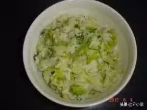 2. 鍋內放入適量的底油,開中火,鍋熱後倒入涼飯翻炒,要將飯炒散、炒熱,加入包心菜絲繼續翻炒。