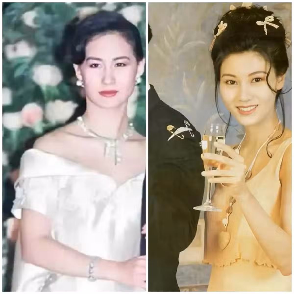 再把二美各自戴皇冠的髮型放大對比一下,何超瓊的氣質真的宛如皇室家族裡的高貴公主,她確實有著公主般的氣質,而且她那股大氣又沉穩的美貌又像很優雅的王妃一樣,李嘉欣給人的感覺就是很漂亮很驚艷。