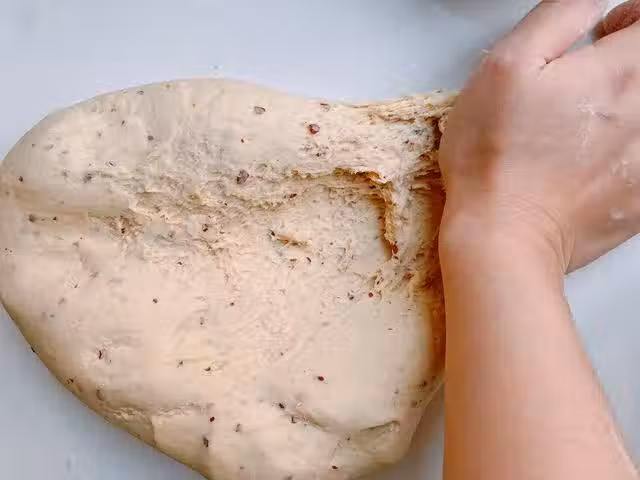 5、揉好之後將麵糰稍微整理一下,開始用擀麵杖擀麵團,將麵糰擀成一個長方形的麵皮,擀好之後從一端開始卷,擀成圓柱形,如果感覺麵皮較粗,可以再搓細一些,搓成合適粗細的長條之後,再分切成大小均勻的麵糰,麵糰可以切成長方形的,這樣蒸好之後不容易倒。