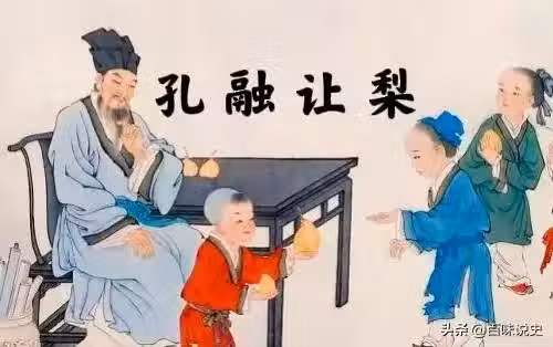 「孔融讓梨」的故事至今都是弘揚我們中華民族傳統美德的一段佳話,四歲的孔融,成了孩子們學習的榜樣,更成了道德的楷模、謙讓的典範。