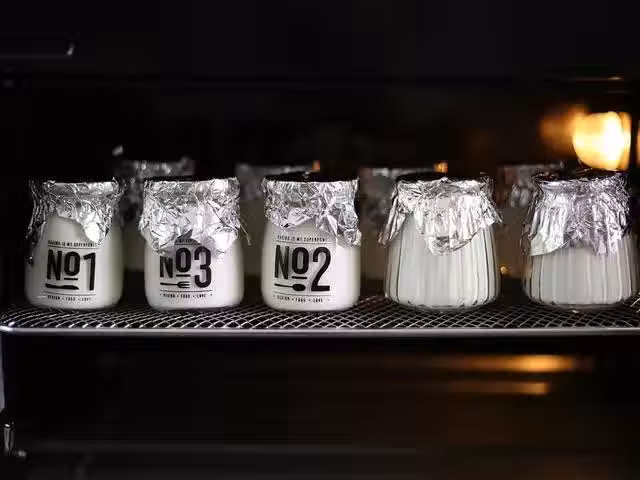 4、送入烤箱中層,選擇發酵檔,發酵9個半小時,待酸奶做好,送冰箱冷藏片刻即可享用