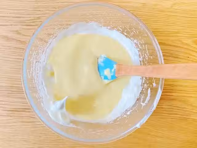 8、將混合好的蛋糕糊裝入裱花袋中,再擠入12連紙杯蛋糕模具中,7~8分滿即可,倒好後,將模具在桌面上輕震幾下,一來可以去除大氣泡,二來可以讓蛋糕糊表面更平整。今天的配方剛好可以烤一盤