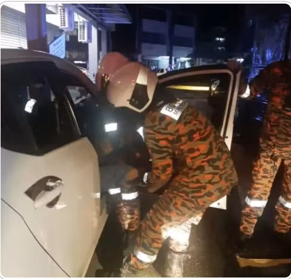 消拯人員趕抵現場撬開車門,惟熟睡車中的男子疑吸入過量一氧化碳而睡死。