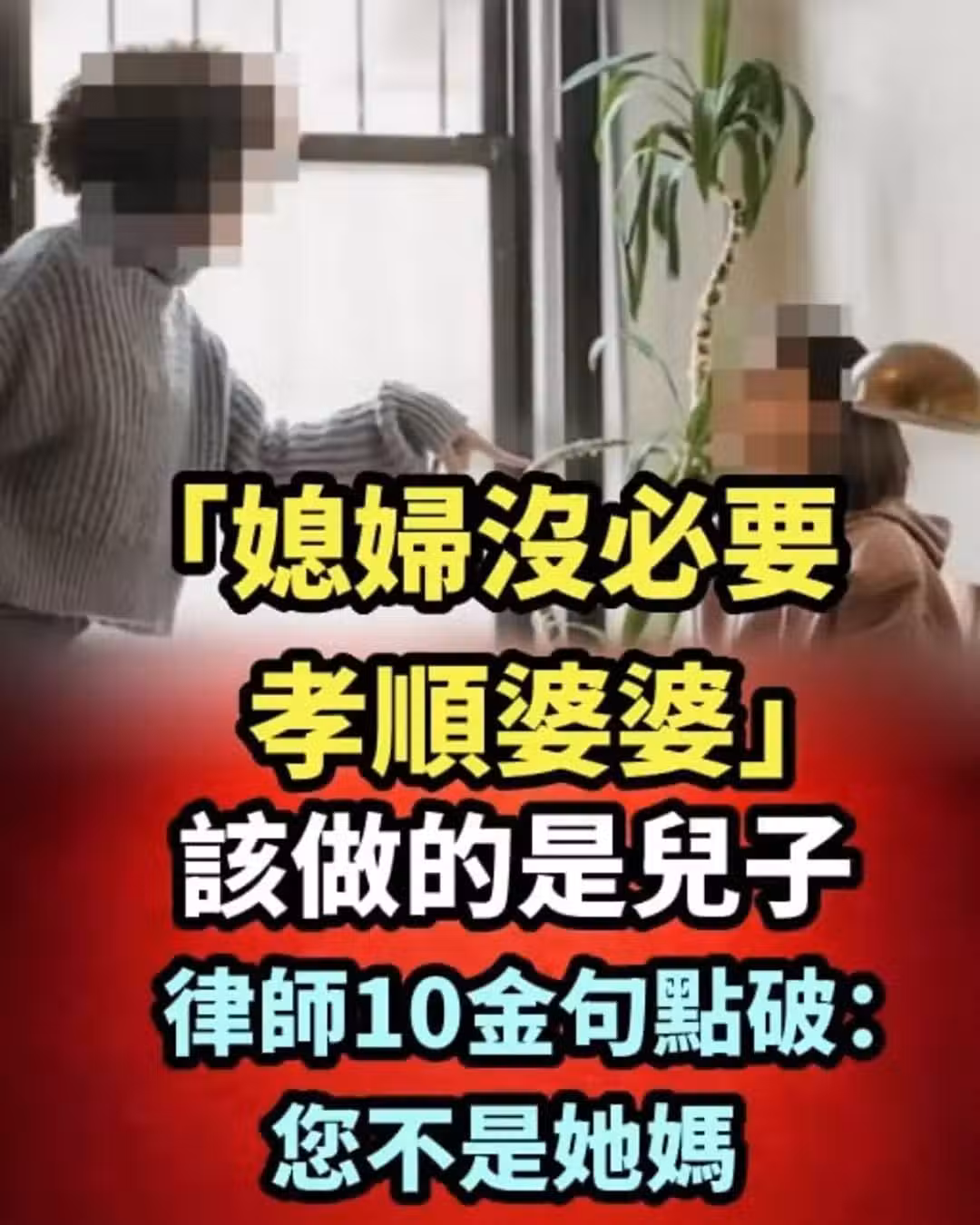 「媳婦沒必要孝順婆婆」該做的是兒子 律師10金句點破:您不是她媽!