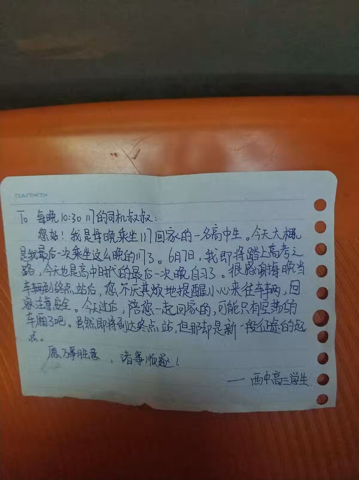 聯考前,高三女孩末班車上留下紙條「感謝每晚不厭其煩的提醒」,公車司機看哭:一切都值得!