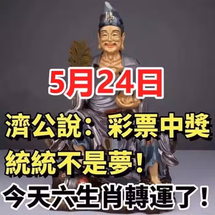 5月24日濟公說:彩票中獎統統不是夢,就在今天六生肖轉運了!