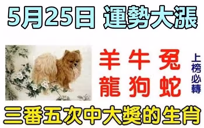 5月25日運勢大漲,三番五次中大獎的生肖有你嘛