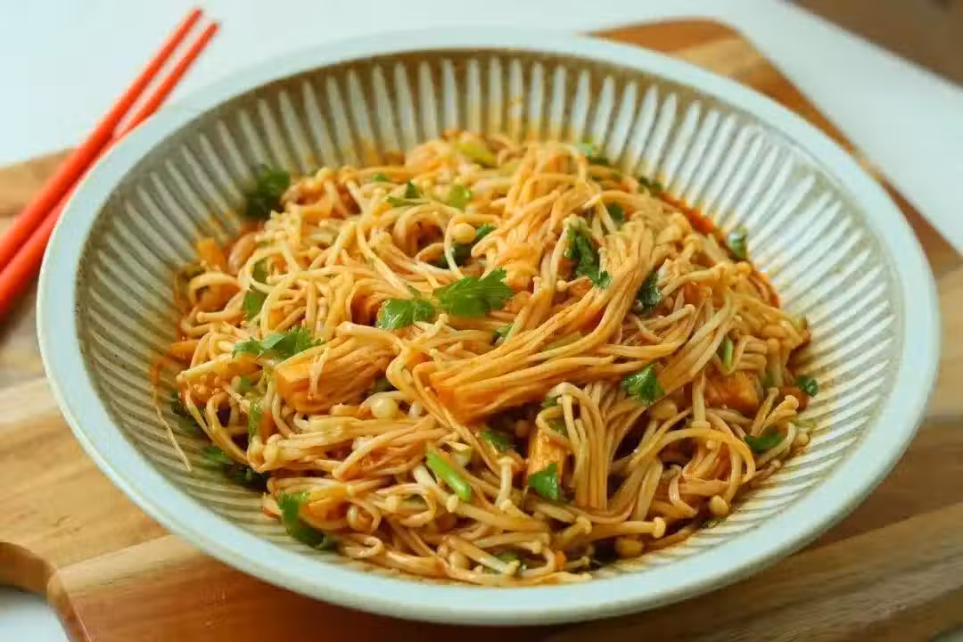 1、上次涼拌的豆腐皮金針菇,小朋友就專門挑著吃金針菇,說很好吃。今天就多買了一些做著吃。準備金針菇,我這裡用了2盒,就是完整的一把;