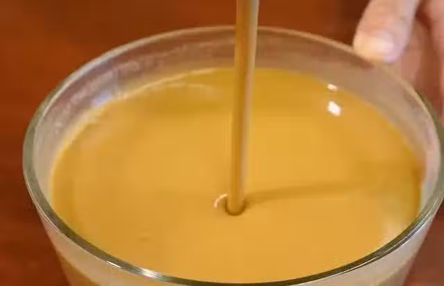 4,再來做一個白色生漿:同樣碗中加入100克馬蹄粉,用100毫升清水攪拌化開,再用濾網過濾一遍。