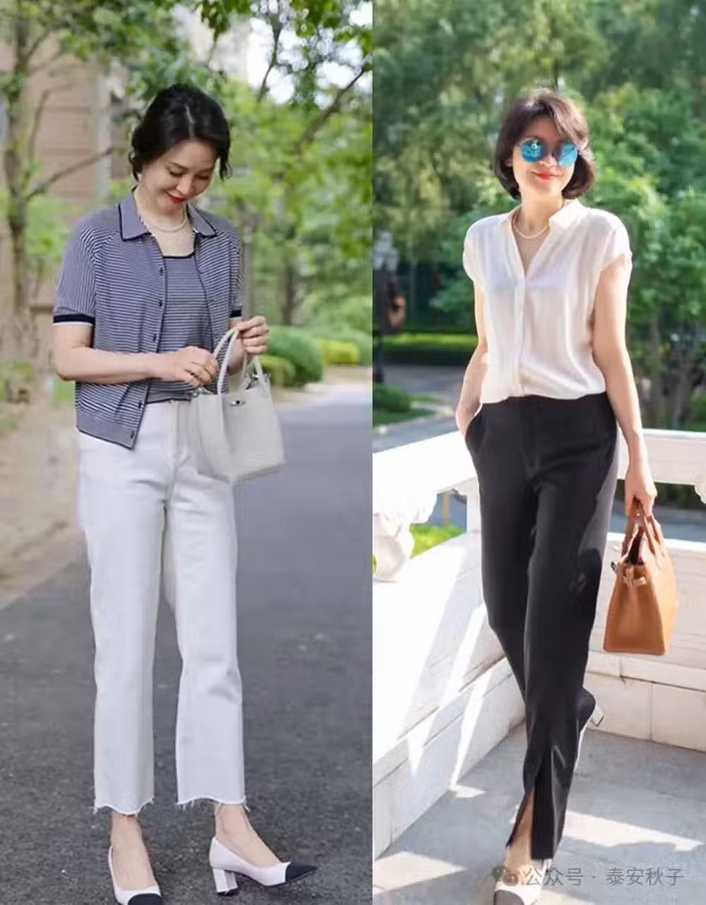 很多4、50+女性衣櫥中都有經典基礎款服裝,比如夏日裡的修身高腰褲,便是其中的經典款式。