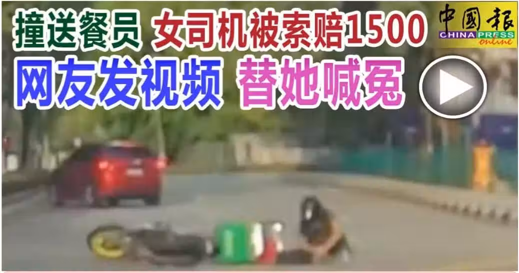 撞送餐員 女司機被索賠1500 網友發視頻 替她喊冤