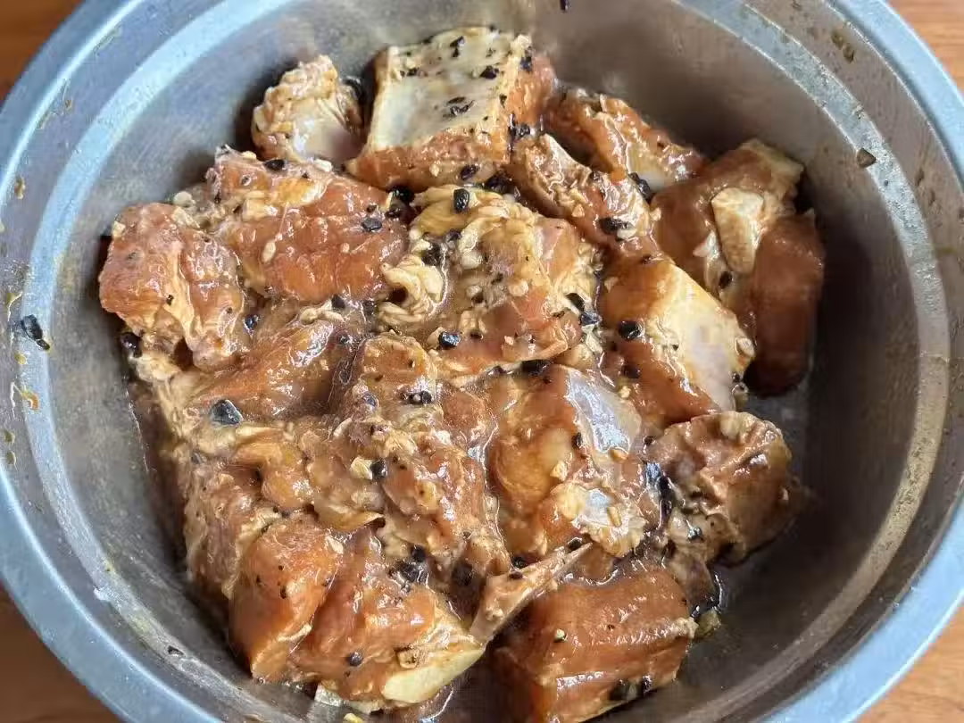 3、腐竹,這一道菜的靈魂配角,需提前用溫水泡軟,直至恢復柔軟的質地,然後切成適宜的長度,整齊地鋪在盤子的底部。腐竹不僅吸收了排骨的湯汁後會變得異常美味,還能為這道菜增添一份獨特的口感。接著,將腌制好的排骨一一擺放在腐竹之上,排列得既美觀又便於受熱均勻。