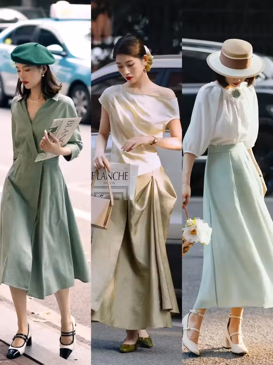 單品解析:純色連衣裙,尤其是以棉麻、真絲等天然材質製成的款式,是夏日裡不可或缺的優雅單品。它以其流暢的剪裁、柔和的觸感,以及不挑人的設計,輕鬆打造出高級感滿滿的夏日造型。
