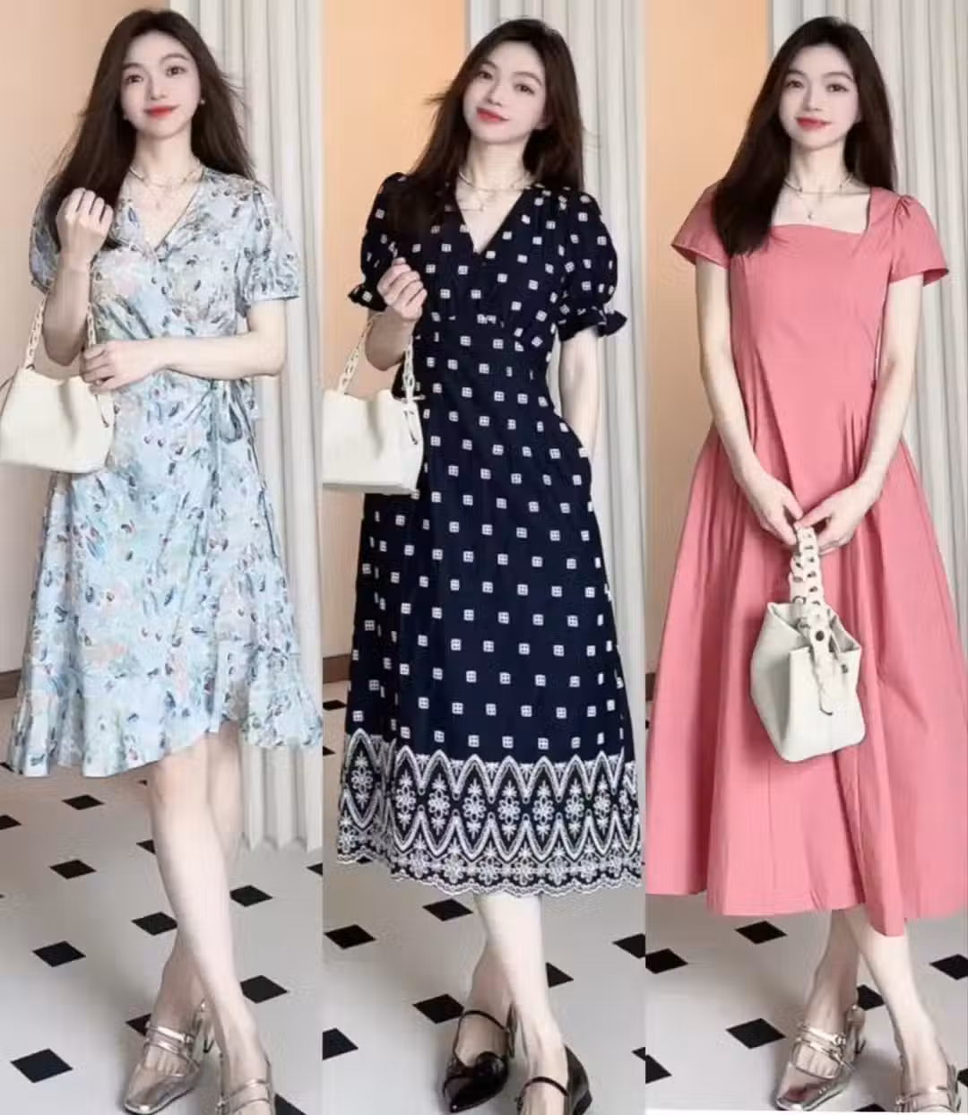 搭配技巧:選擇一雙簡約的平底涼鞋,如綁帶涼鞋、一字帶涼鞋等,既舒適又時尚。如果想要增加一些層次感,可以搭配一條精緻的腰帶,或是選擇一款與連衣裙顏色相呼應的包包。