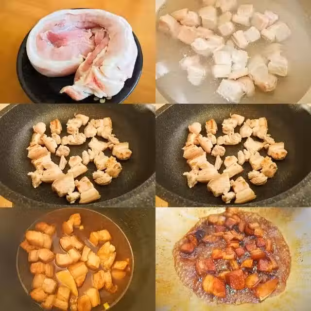 【步驟】1、五花肉洗乾淨,切成小塊,放入鍋中,加水加入蔥段和薑片,淋入適量料酒,把水燒開焯燙3分鐘。