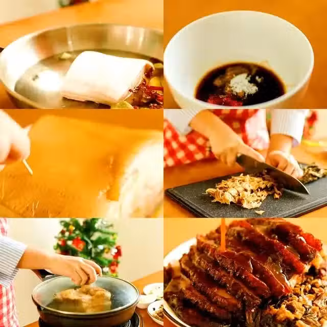 【步驟】1、把五花肉放入冷水中,加入蔥,姜,八角,香葉,花椒,等香料,放入適量的料酒,少量鹽,煮半個小時之後,撈出來放涼備用。