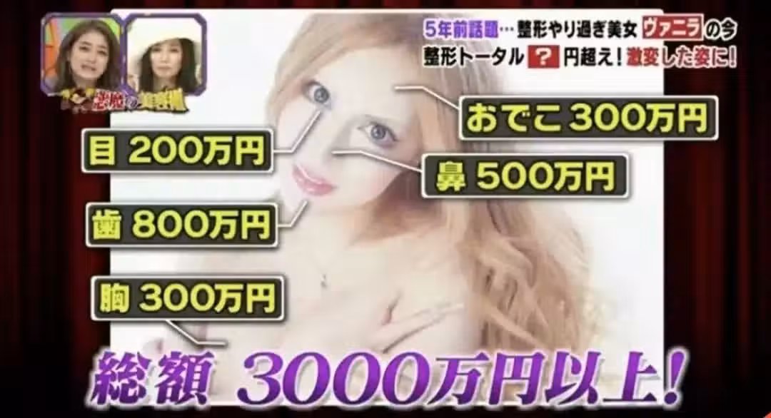 當時身為高中生的她已經陷入瘋狂了,還在胸部裝了6公斤的矽膠,甚至植入人工頭骨,只為了看起來更像外國人頭型,更直言「我對自己全身都不滿意,全部都要整!」