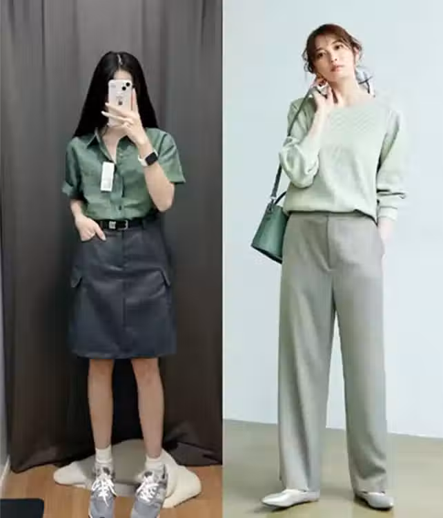 為了化解這種狀況,在穿搭造型中加入綠色之後,效果瞬間變得與之前不一樣。