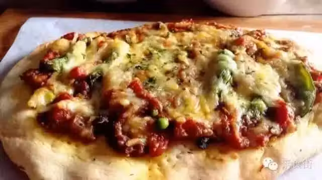 餅皮上用叉子插上洞洞,再薄薄抹上一層橄欖油。繼續抹上咖喱醬、放上青椒圈,最後碼上素芝士。