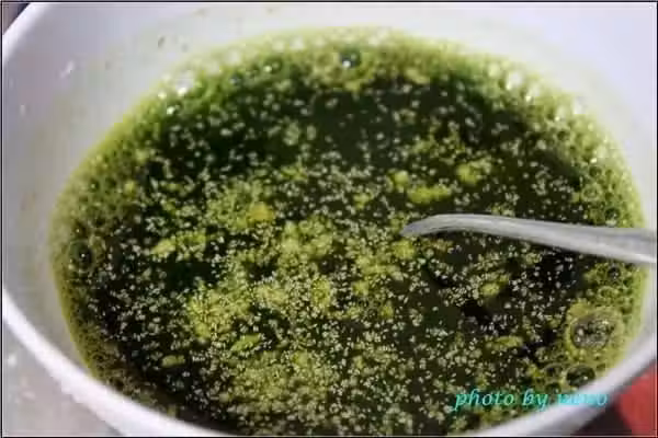 3. 分次加入班蘭水,慢慢揉成均勻的麵糰,班蘭水加完了,再加水拌成團。