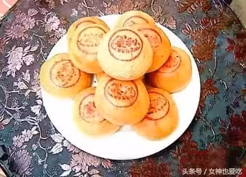 2、然後將包好餡的麵糰放在做餅乾的模子裡用手壓成圓形。