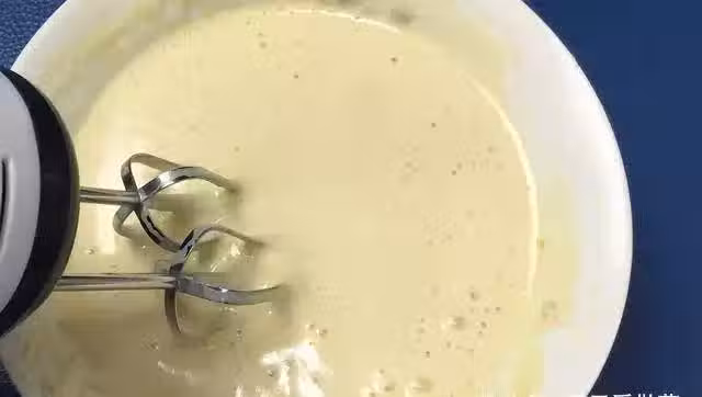 3、篩入低筋麵粉,我是自己自製的低筋麵粉,前面有視頻和文字,親們可以閱讀。用篩子篩入低筋麵粉,使麵糊更加細膩一些。