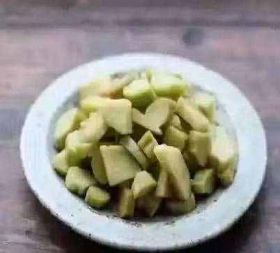 1、把西蘭花梗外面厚厚的皮削掉,切成厚片或小丁,建議不要切薄片,這樣口感吃起來會脆脆的