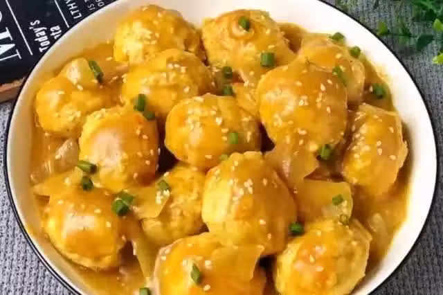 3、放入雞肉丸子煮熟後,大火煮至湯汁濃稠即可。